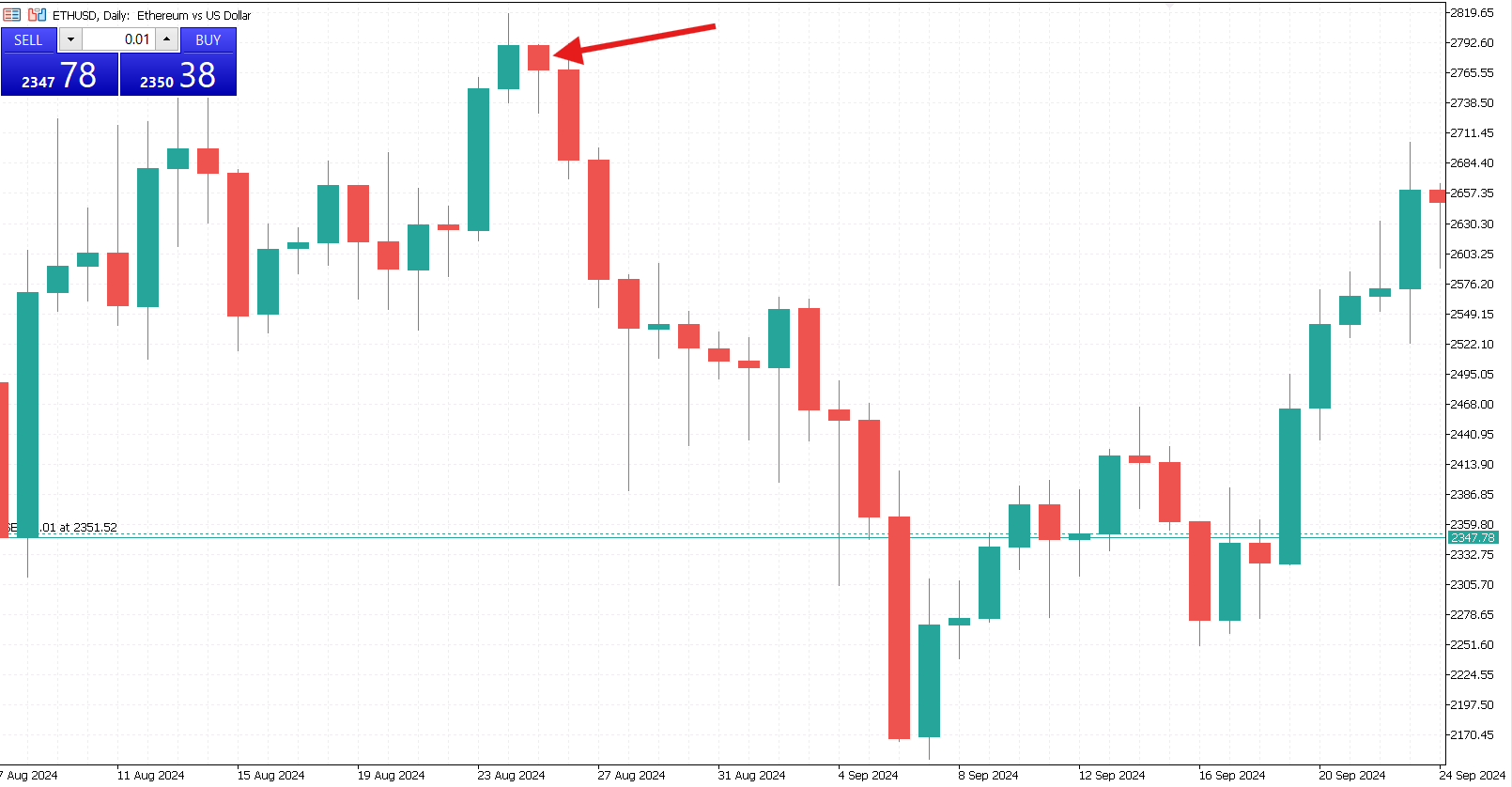 The psychology behind this pattern is elementary. Buyers attempted to increase the price, but the sellers pushed the price lower. The pattern marks the peak of the uptrend.